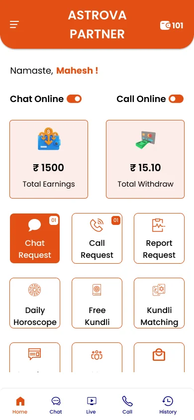 Flutter mobile apps for customers and astrologers with beautiful UI.